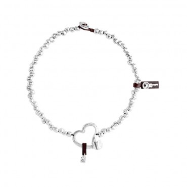 Collana donna Unode50 modello Corazonada pendente cuore bagnata in Argento della collezione Clasicos plata-cuero misura 36cm - COL0475MT