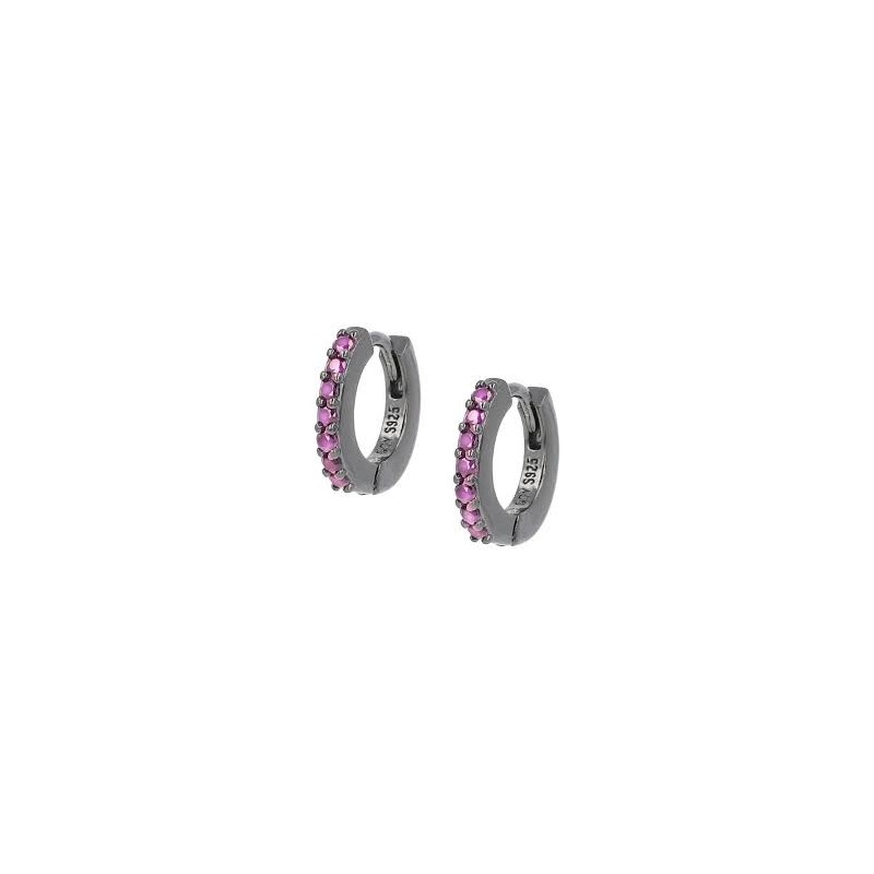 Path: > > > ORECCHINI AMENOrecchini Cerchio Rutenio Tennis Mania Zirconi Fucsiasku: ET1NROrecchini huggies in argento 925 nero rutenio con