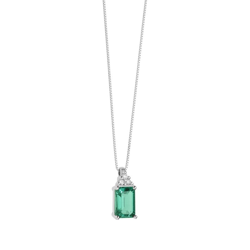 Collana donna Comete Gioielli della collezione Storia di luce realizzata in Oro Bianco e impreziosita da diamanti e smeraldo - GLB 1438