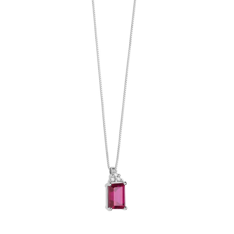Collana donna Comete Gioielli della collezione Storia di luce realizzata in Oro Bianco e impreziosita da diamanti e rubino 42cm - GLB 1439