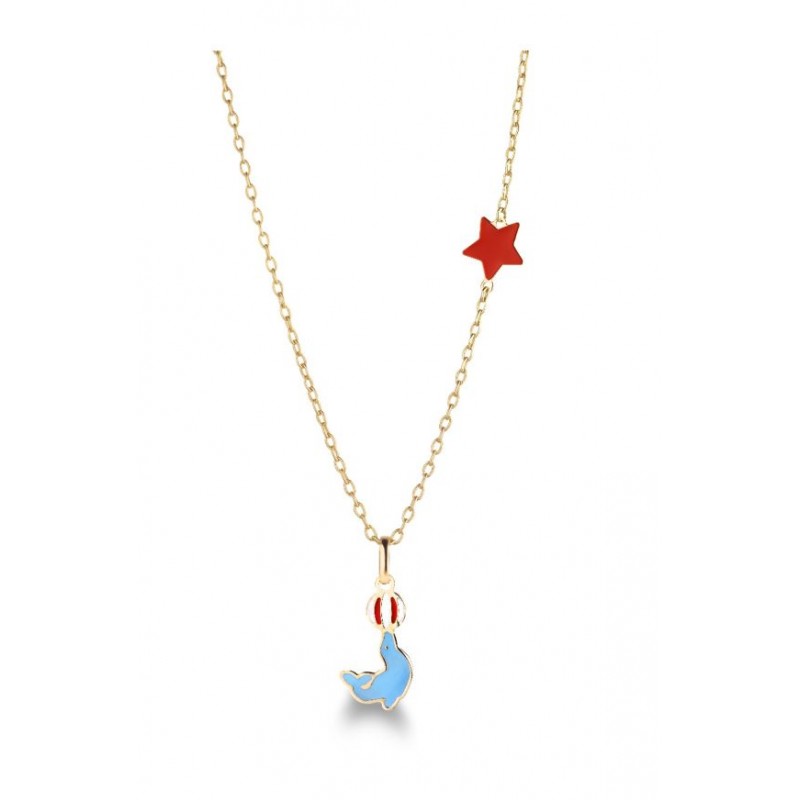 Collana Le Bebè in Oro Giallo Foca e Stellina Smaltati
