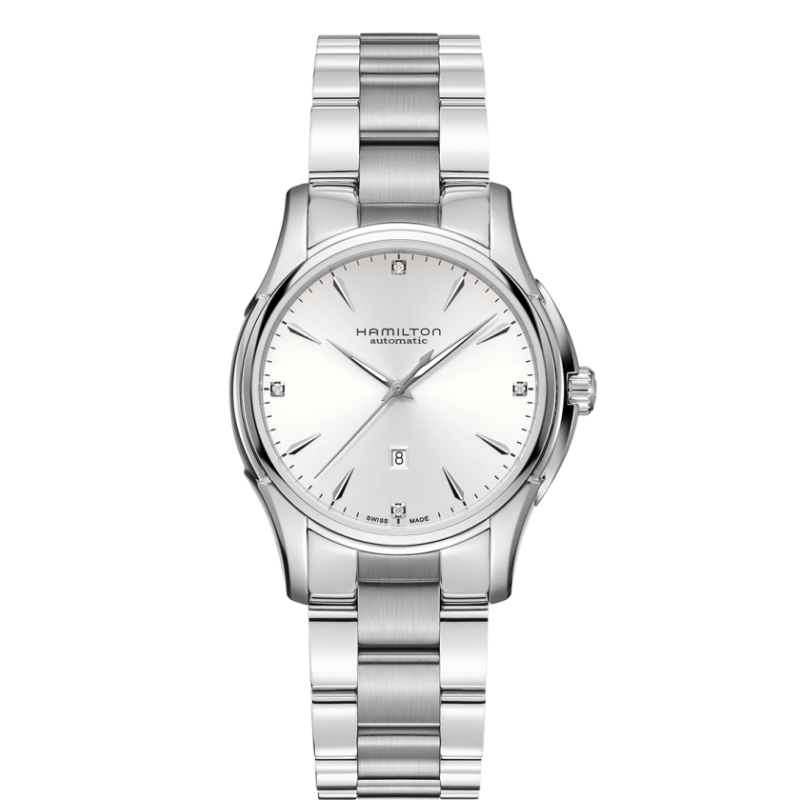 Orologio da Donna Hamilton, Collezione Jazzmaster Viewmatic, con cassa in acciaio da 34mm con fondo trasparente e quadrante automatico color argento con funzioni Tempo/Data.