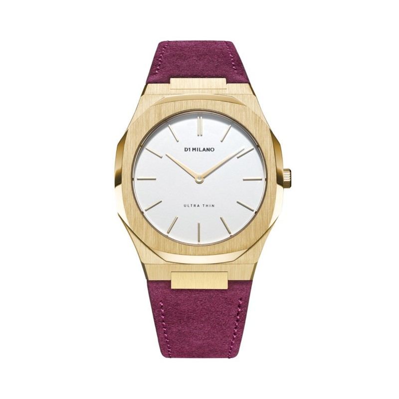 Orologio Donna D1 Milano modello Vigna FW19 della collezione Fall Winter Ultra Thin. Dotato di movimento Al Quarzo, cassa Oro Rosa da 38mm con quadrante Bianco e cinturino Vigna in Pelle Suede