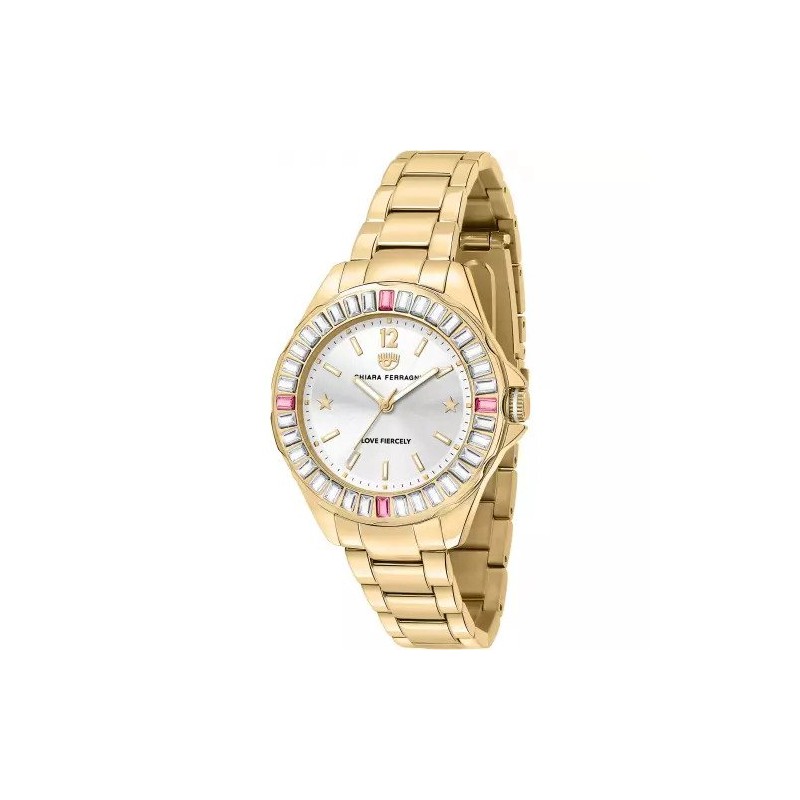 Orologio Donna Chiara Ferragni Collezione Sport Placcato Oro Giallo Cassa 36mm con Zirconi Colorati Cinturino Oro