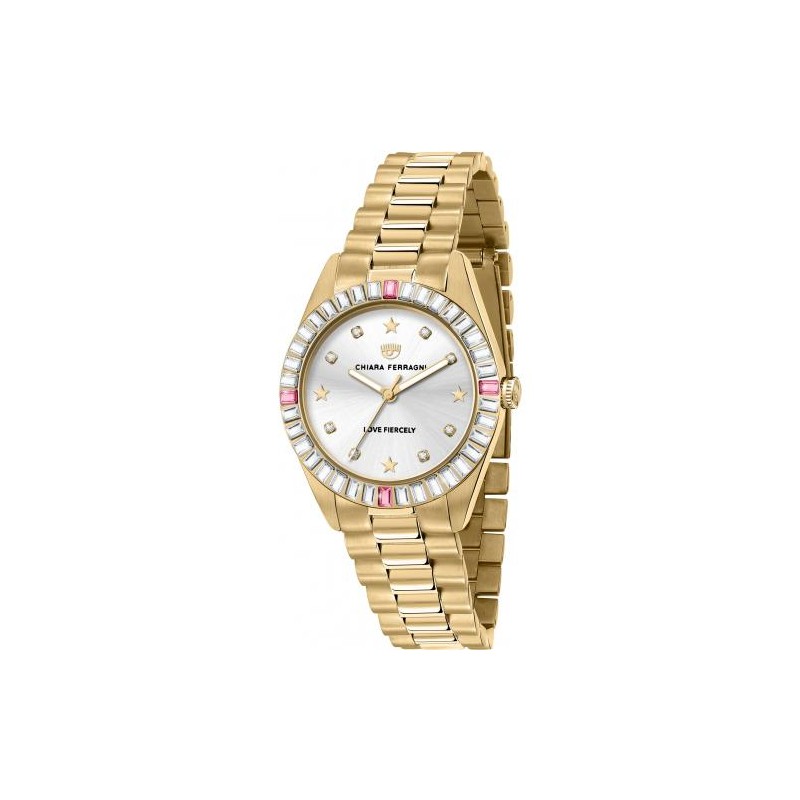 Orologio Donna Chiara Ferragni Collezione Everyday Cassa 34mm con Zirconi Bianchi e Rosa Cassa e Cinturino Placcato Oro