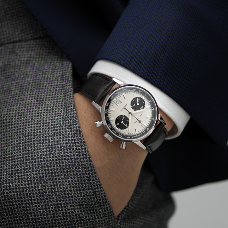 H38416711Orologio automatico uomo Hamilton American classic intra-matic Cronografo - Cinturino pelle vitello nero Carica automatica Cronografo automatico Datario Riserva di carica estesa da 60 ore Correzione rapida della data Movimento con decorazione laser Due o tre contatori - H38416711