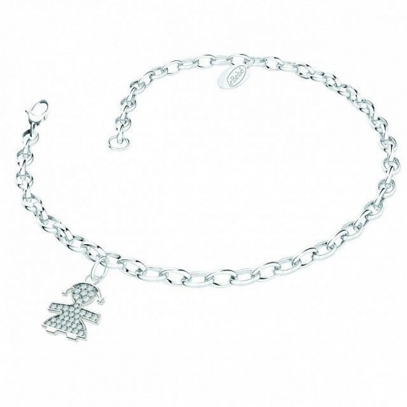 Bracciale Pavé bimba in oro bianco con sagoma in pavé bianco.