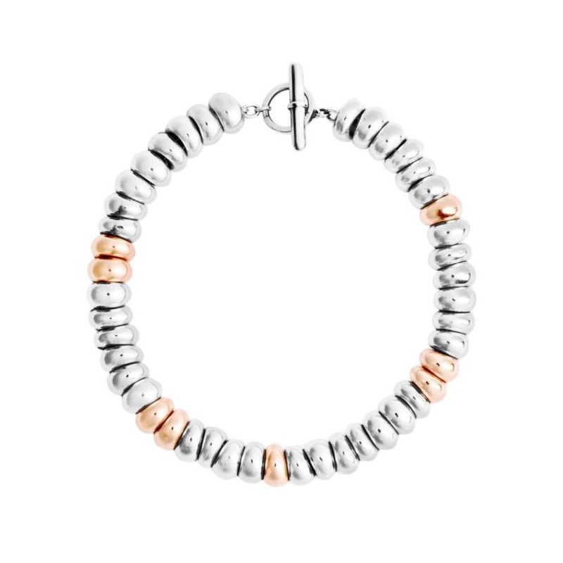 Bracciale Rondelle Dodo in argento con Rondelle Argento dorato oro rosa 18K, catena e t-bar in argento 925 e anello brisé in acciaio