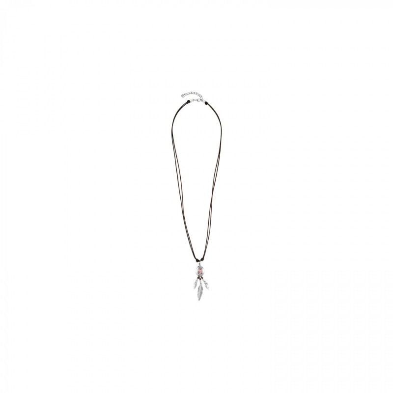 Collana lunga con base in cuoio marrone e rifinita da un pezzo bagnato nell'argento a forma di piuma e cristallo SWAROVSKI® in colore rosa nude. Un gioiello senza tempo che puoi indossare tutti i giorni e che darà un tocco chic ai tuoi outfit. Realizzato da UNOde50 in Spagna in maniera totalmente artigianale.