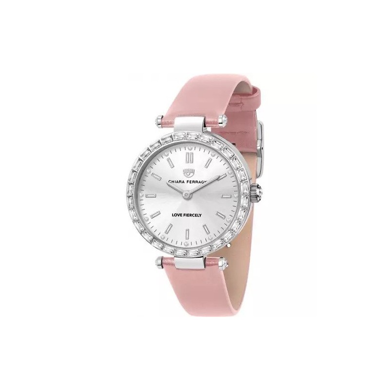 Orologio Donna Chiara Ferragni Collezione Lady Like Cassa 34 mm con Zirconi Quadrante Argento e Cinturino in Pelle Rosa